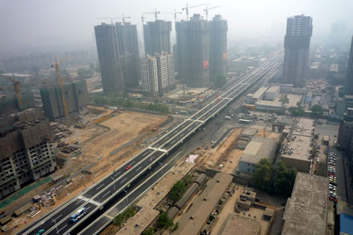 | 和平路是石家莊市北翼東西向的一條城市主干道,是石家莊市總體規(guī)劃中的“四橫”之一。和平路跨線橋(紅軍街——棉一立交橋)工程始于紅軍大街,跨越中華大街、九中街、北新街、車輛廠前街、京廣線、勝利大街、平安大街、長征街后與棉一立交橋連接,高架橋全長3616米。 由我公司承建的一標段西起紅軍大街,東止于北新街東220米,總長1621.267m,由高架橋梁、道路、排水管道、道路照明等工程項目組成,是全線三個標段中工程量最大的標段。2009年4月30日主橋主路正式通車,比預定工期提前了10個月。 “和平路跨線橋工程的建成通車,標志著省會城市基礎(chǔ)設(shè)施建設(shè)翻開嶄新的一頁,對完善市區(qū)路網(wǎng)結(jié)構(gòu)和改善市民出行環(huán)境、進一步改善城市面貌意義重大!---燕趙晚報 2009年5月1日 頭版